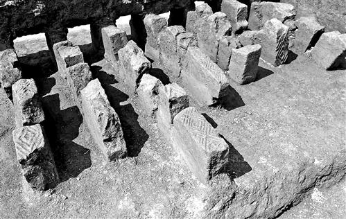 用汉代墓砖砌成的炉栅。 通讯员 余鸿 摄