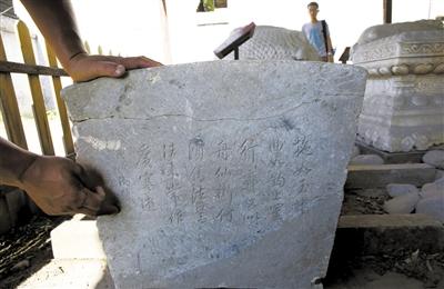 昨日,圆明园,此前被曝遭到破坏的乾隆御笔石块已被安置到圆明园流散文物基地。新京报记者 王叔坤 摄