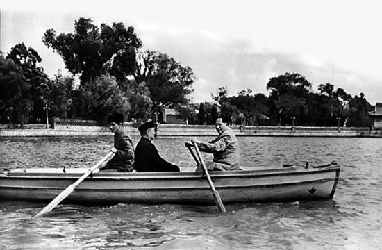 1952年9月,毛泽东在中南海亲自为程潜(中)划船