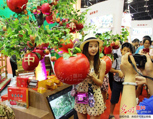 艺术苹果树亮相山西文博会 引美女合影(图)
