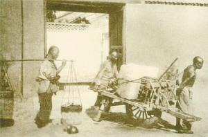 冰商要想收藏冰雪,得有自己的冰窖。早在唐代,商业性的民间冰窖就形成了一个“特种经营”的行业。据记载,白居易诗名“动于闾阎”(打动普通老百姓),因此能够“每需冰雪,论筐取之,不复偿价,日日如是”。这说明当时经营冰雪生意的商家完全是民间背景,无论谁需要用冰,都可以到市场上买到。到了宋代,民间冰雪经营业十分发达。《东京梦华录》载:“(六月)冰雪凉水……巷陌路口,桥门市井皆卖。”