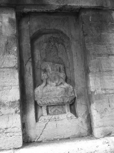 宝塔底层八面小龛中的佛像仅剩这尊。