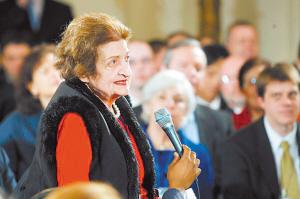海伦质问了10位美国总统,几十年来,美国人总能从总统记者招待会的现场直播中,看到她从前排站起来,盯着总统的眼睛发问。