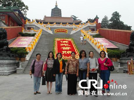 国际在线消息(记者 董洁、林迟):22日下午,由本台记者和泰、缅、柬、老四国记者共同组成的“2013佛教文化之旅”媒体代表团一行20多人来到位于北京西山八大处,采访供奉着佛门圣物——佛牙舍利的千年古剎灵光寺,受到灵光寺方丈常藏大和尚的热情接待。
