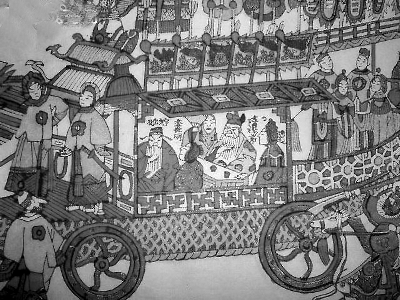 清末民初原版木版年画《隋炀帝下江南》