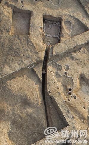 M31墓室: 丰富了汉墓类型 M31为长方形竖穴土坑石椁墓,形制独特。它是由长方形墓室和排水沟组成。墓地底部四周都用石块围着,墓底中间有一排横向的石块。墓室的西南部发现有排水沟,排水沟长十余米,连接墓室的北段排水沟底部铺满了石块,中间用比较大的石块封堵。这个墓室的年代为汉代,这种类型的墓是浙江地区的首次发现,全国也未见类似的报道。它的发