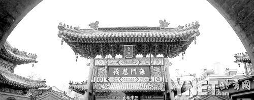 位于海河西岸天津古城东门外的天后宫是典型的中国古代传统建筑,带巨大飞檐的漆红描绿绘金的牌坊门,述圣颂德的方形石碑和威严庄重的石狮子都对称排列,一切都是那么具有中国特色。