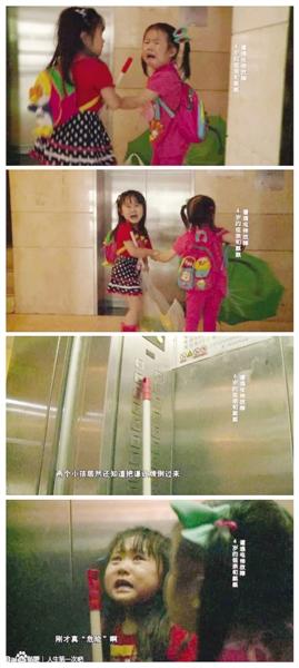 4岁的佳奈和小伙伴麒麒要去给妈妈买菜和水果。经过一番波折,姐妹俩拎着东西回到了家所在的大厦。她们刚进电梯,灯突然就灭了。原来这是节目组设置的“突发事件”,用来“考验”两个宝贝的。黑暗里,两个女孩凄惨地哇哇大哭,跑出了电梯。挣扎了一番,她们还是战胜恐惧进了另一部电梯,却还是惊魂未定的样子,小麒麒虽然在安慰佳奈自己却后怕地哭起来。可怜又可爱的样子令演播室里的嘉宾谢雨欣也心疼得抹起了眼泪。