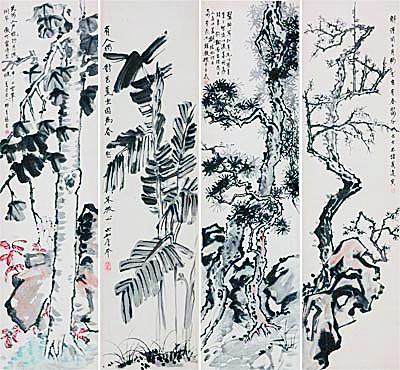张大千 花卉四屏