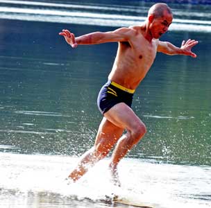 参与互动(0) 2009年10月19日,因少林“一指禅”而名声大噪的泉州南少林寺武僧释理亮曾挑战传说中的少林轻功“水上漂”。中新社发 傅丹丹 摄