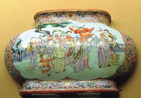 据了解,此次展出的壁瓶中,近半来自宁波博物馆的馆藏,其中绝大部分是甬籍著名收藏家秦秉年所捐赠,包括清乾隆豆青秞贯耳壁瓶、清乾隆天蓝釉夔龙戏珠纹壁瓶等。记者在展览现场看到,小小的壁瓶极富艺术韵味,造型尤如“半拉”瓷器,后面还有挂架。壁瓶上的图案极具情趣和风雅,有的还体现了古人的生活场景,如明万历青花人物图壁瓶,就体现了当时官员在山林间饮宴的场景。而清乾隆粉彩开光人物图壁瓶,则描绘了民间传说中的12花神,不仅有西施,也有老令婆、童子,甚至还有钟馗,形象各异,栩栩如生。(记者王路)