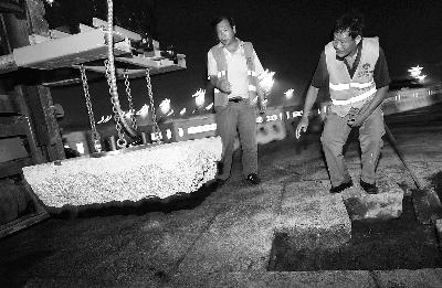 2002年曾对破损严重的石板道进行局部集中修复,多年来一直是采取日常维护的方式,夜间零星修复石板道,保障天安门石板道交通正常使用,但是问题一直没有得到解决。(记者 陈斯)