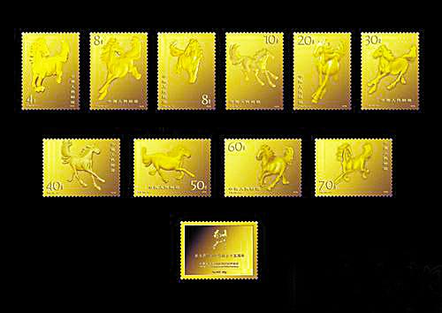 为纪念徐悲鸿逝世60周年以及《奔马》邮票发行35周年,近日中国邮政特别打造《中国珍邮――奔马》纯金/纯银版。继首套纯金银邮票《开国大典》后,中国邮政先后推出《国宝熊猫》、《十二生肖纯金纯银邮票大全套》、《清明上河图》等多套金银邮票,但羊城晚报记者在邮票市场难觅其踪影。