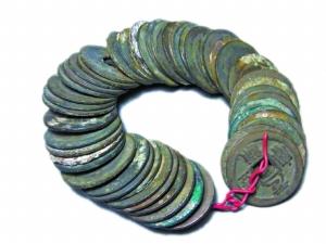 中国是世界上最早使用铸币的国家。距今三千年前殷商晚期墓葬出土了不少“无文铜贝”,这是最原始的金属货币。到了春秋战国时期,已经逐渐确立了布币、刀币、蚁鼻钱、环钱四大货币体系,它们分别由刀、铲、纺轮等劳动生产工具演化而来。