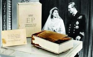 据报道,英国女王伊丽莎白二世1947年与菲利普亲王共结连理,英国举国欢庆。有宾客将当年为女王婚礼特制的约2.7米高、4层结婚蛋糕的一部分珍藏至今,现在一块蛋糕拍卖价1750英镑。