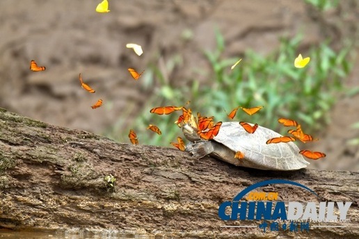 亚马逊热带雨林奇观:蝴蝶喝乌龟的眼泪摄取盐分(2)