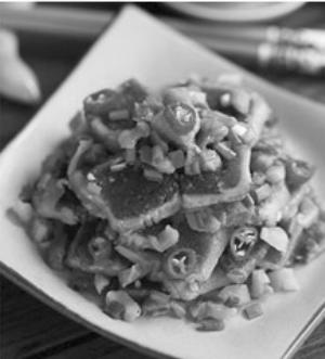 拌月饼:将火腿、酱肉馅的月饼切成细丁,拌以榨菜丝、葱花、味精,月饼便成了爽口的佐餐小菜。