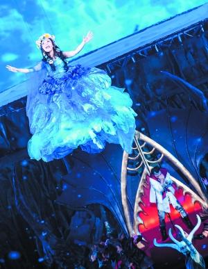 昨晚北京虽然遭遇降雨,但《鸟巢·吸引》的首演并未受到影响,开场时大型的水幕运用、喷泉表演和水舞台的浮现让现场观众有一种暴雨降临的错觉。(实习记者成长)