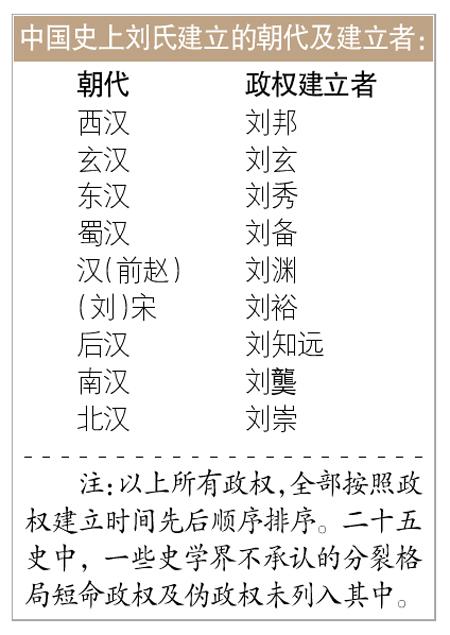中国古代刘姓所建相关政权最多 共为9个