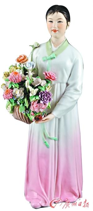 枫溪瓷 《卖花姑娘》(1973年),取材自上世纪70年代朝鲜电影《卖花姑娘》。