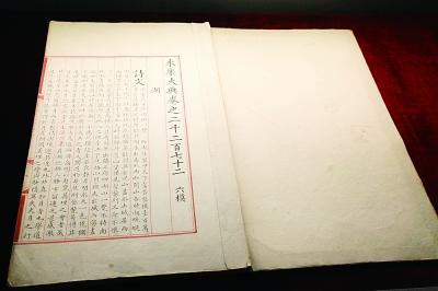 陈红彦说,此册《永乐大典》为卷2272至2274卷“模”字韵“湖”字号,其内容为与“湖”相关的诗文。国图早在1951年和1954年分别入藏了此册《永乐大典》的前一册和后一册,三册相缀,使《永乐大典》“湖”字号的内容相对完整。(记者杜羽)