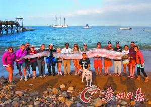 卡塔利那岛海事研究所说,这是一生难见的重大发现。这条近6米的皇带鱼,要16个大人才能举起来。研究者查斯说,看到这条鱼时,他十分惊讶,这是一生难见的重大发现。