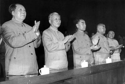 1964年,毛泽东、刘少奇、周恩来、朱德、邓小平出席中国共产主义青年团的第九次全国代表大会(资料图)