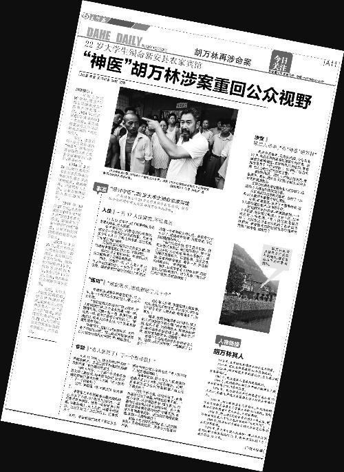 “对这次采访,胡万林简短地向媒体说了一些东西。”李警官说,当时的胡万林,虽然早已褪去了“神医”的光环,但依然坚持自己的“自然运动疗法”,并对传统的医生嗤之以鼻,甚至表示自己已经攻克了癌症和艾滋病。