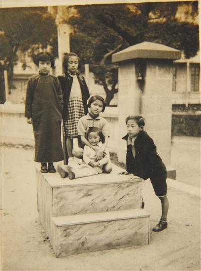 1938年,许燕吉兄妹与陈寅恪的三个女儿。立者为许燕吉与陈小彭,坐者陈流求与陈美延,旁边周苓仲。在香港,许燕吉全家最常去的要数陈寅恪家了。她回忆说,流求带了大家到后山上玩。四个孩子跑呀,追呀,还满山探寻。坟地里的人骨也能引起孩子们的兴趣。