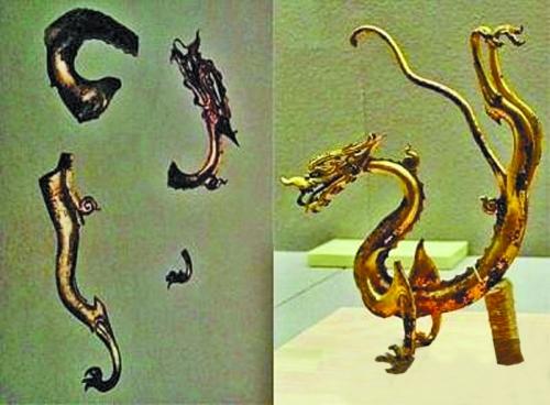 “过去,我们传统的修复办法是用钻头和小刀在青铜器上把锈刮掉,最后清洗是用刷子刷的,但在这个过程中会损伤其本体。”他将过去用的“土办法”与现在的技术进行了对比,“现在我们第一步会先定性,用X光对其照射,分析是什么种类的锈;第二步再定量,看成分分别由多少铜、锡、铅构成,然后用柠檬酸把它除掉;第三步用超声波结合一种科学试剂就把青铜器上的锈彻底清洗掉了。”