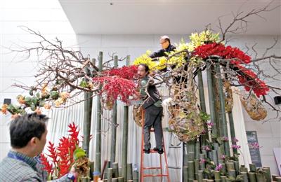11月12日,园林博物馆工作人员为中华插花艺术周布展。园博会结束后,园林博物馆将免费开放。新京报记者 薛珺 摄