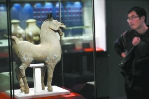 图为市民在“楚风汉韵—南水北调中线工程渠首水源地南阳文物展”上观看汉代陶马。本版照片均为本报记者 孙戉摄