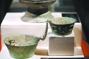 展厅中有一件文物,说明牌上写着“标准铜量汉代(公元前202—公元220年)南阳市博物馆藏”。专家介绍,量器古代文献上多有记载,但古代遗留下来的实物较少。