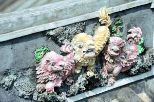 “吴家大院是越南华侨吴庚南在九江建的,他在越南做外贸生意,进口大米、药材贩卖,赚了钱后回到老家建起来的。”李伯告诉记者,吴家大院最早是光绪年间开始建的,很多材料都是从越南运回来的,初期兴建的是龙船脊镬耳屋封火墙风格的住宅。建成的龙船脊镬耳屋有近十栋,大小一致,整齐排列。