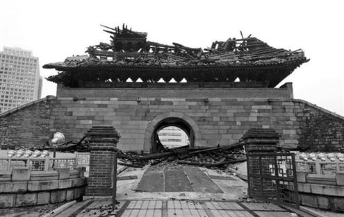 崇礼门又称南大门,是古代汉城(今首尔)8座城门中的正门,文化价值巨大。崇礼门故意纵火犯蔡钟基(音译)2008年获刑10年监禁。蔡称故意纵火是因不满政府土地赔偿而泄私愤。