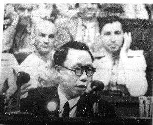 日本律师鹈泽聪明首先上了场,兜着圈子让溥仪承认自己早有复辟的打算。溥仪当然不会承认。