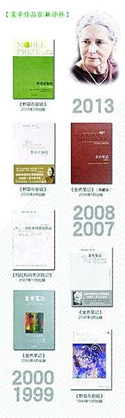 据悉,译林出版社早在1999年就出版了莱辛成名作《野草在歌唱》,2000年推出了她的代表作《金色笔记》两个版本,2007年又出版了莱辛科幻力作《玛拉和丹恩历险记》。莱辛获得诺贝尔文学奖后,《野草在歌唱》、《金色笔记》均出版了修订版。2008年又推出了《金色笔记》典藏本。2013年2月,《野草在歌唱》被收入译林“诺贝尔文学奖经典”丛书中。目前,译林已拥有莱辛12部作品的版权,计划在三年内分批推出。