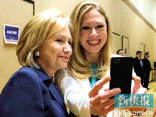 ■连希拉里也在女儿切尔西的带领下,玩起了自拍。