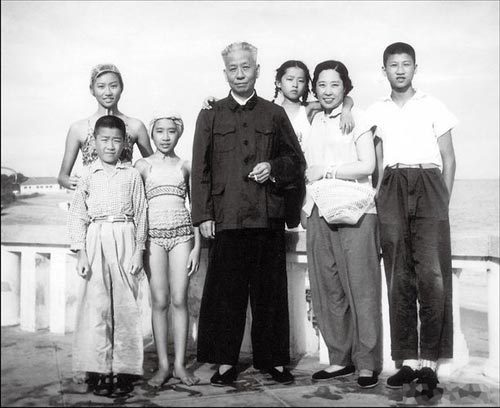 参与互动(0) 孩子们的嬉戏逗闹,吸引了工作中的刘少奇。(后左起:涛涛、亭亭,前左起:源源、平平、刘少奇、王光美、丁丁)