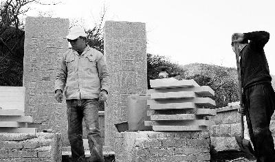 工作人员正对墓碑进行施工摄/法制晚报记者 崔毅飞