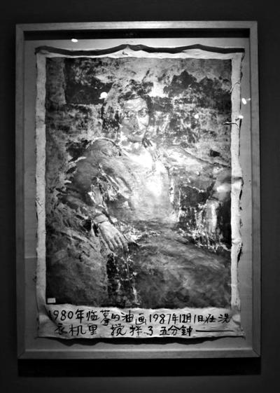 黄永砯1987年的油画作品《1980年临摹的油画,1987年12月1日在洗衣机里搅拌了五分钟》。