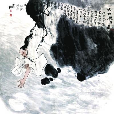 卢沉、周思聪是20世纪晚期中国画坛最具影响力的艺术伉俪。二位先生的画朴实、真挚,充满着现实主义的浪漫情怀与文人的知性情感,作品多由美术馆等公立机构收藏。卢沉一直将注意力放在“写意”人物画与“构成”水墨画上,在探索人物画发展方面作出了不懈的努力。以“醉酒”入画的作品,是卢沉晚年创作的一大特色,也是其寄托“以画代酒”的情感表达方式。此次上拍的卢沉作品《太白捉月图》是画家晚年创作的精品,将醉后李太白闲致飘逸的性情抒于纸上豪端。专题中,卢沉《醉酒图》、《二老对饮图》灵动和谐,充满人生真趣与幽默感。
