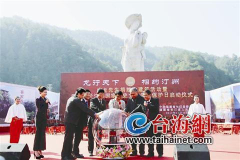 成龙、马未都、陈日源等一起启动“长汀县国家历史文化名城保护日”活动仪式,并在以陈日源撰写的《梦记汀州》为题记的百米长卷上落了款。