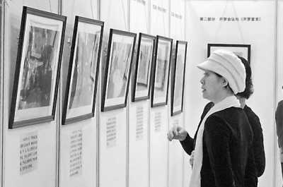 图为观众在北京台湾会馆观看画展。 王平摄