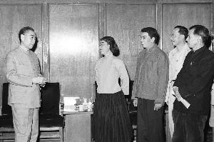 1966年12月20日,周恩来总理接见红线女(左二)等演员。