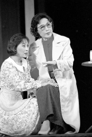 1994年,红线女(右)在北京演出《白燕迎春》。