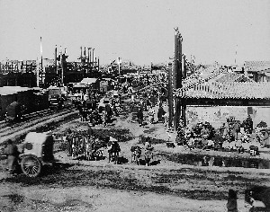 好景不长,1900年义和团运动爆发。照相馆被义和团当成“二毛子”,“凡洋货店、照相馆尽付一炬”,北京的照相馆业受到巨大冲击。战乱平息后,避难于使馆幸存下来的山本赞七郎很快重张开业,并第一时间拍摄了劫后的北京城。透过他在同一地点拍摄的照片,能看出战争对北京古城的伤害。他曾经拍摄过的前门大街,战后他又在同一地点、同一角度拍了一张照片。通过这两张照片,人们不难发现,虽然很多店铺已经重建,但另一些却永远地消失了。