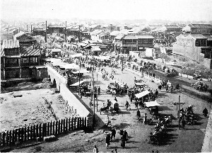 参与互动(0) 1901年,义和团运动平息后,山本赞七郎在同一位置,以同样的角度拍摄了前门大街。此时,商铺已经开始重建,社会秩序也逐渐恢复,但对比之前的照片仍能看出战争造成的创伤。