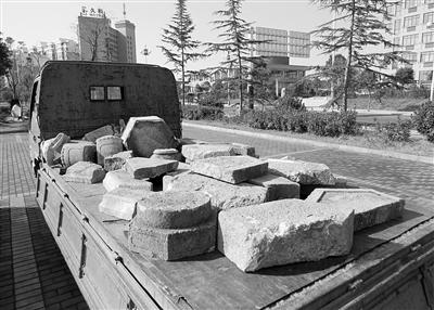 根据彭某交代的情况,警方在广德县境内一座废弃火车站找到了偷放在这里被分成20多块的经幢。据警方介绍,整个经幢大约有2000斤左右,警方在将被偷走的经幢运回时还动用了铲车。
