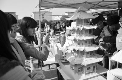 大学生用筷子和牙签制作“黄鹤楼”模型(图)